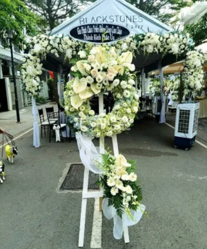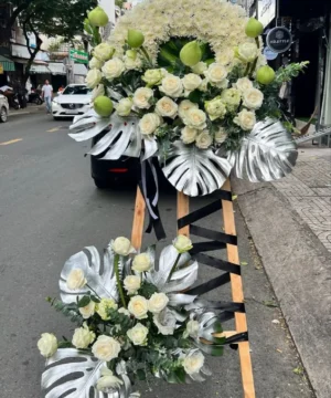 Vòng hoa hồng trắng đám tang, chia buồn ý nghĩa (Gửi hình ảnh trước khi giao)